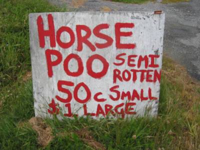 Bring that sign home for your sister, Kerrie. She might as well make some money off those hayburners of hers!