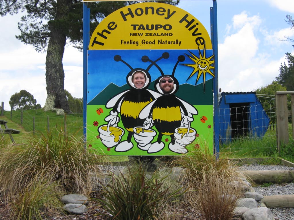 Continuing our progression south, we made it Taupo on Sunday night. The holiday park had a strict checkout time of 10 a.m., so we got an early start on Monday to visit Huka Falls and the Honey Hive, both just north of Taupo. Although the falls are only about 10 meters (33 feet) high, the volume of water is tremendous. Hart took picture after picture after picture. We haven't sorted through the pictures yet, so we picked this one at random.