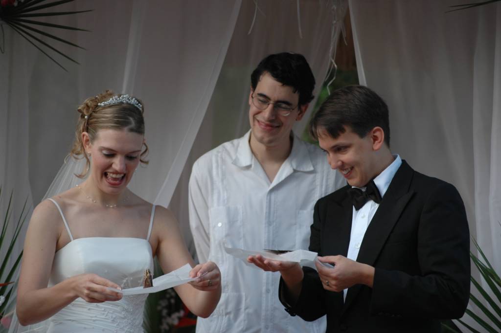 Randy and Hart were roommates their first year of college at Macalester. Dan, Dave and Andy lived on the same floor as Hart and Randy and they all became friends. Collectively, the five of them are referred to as "The Geeks." It is remarkable that 11 years after they met, they are all still good enough friends to travel to Belize for a wedding.