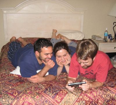 Hart and Shahv took all the pictures of the family, so I'll have to post those later. The only pictures I took all weekend were of Shahv, Megan and Hart playing Hart's PSP (portable Playstation) in our hotel room.