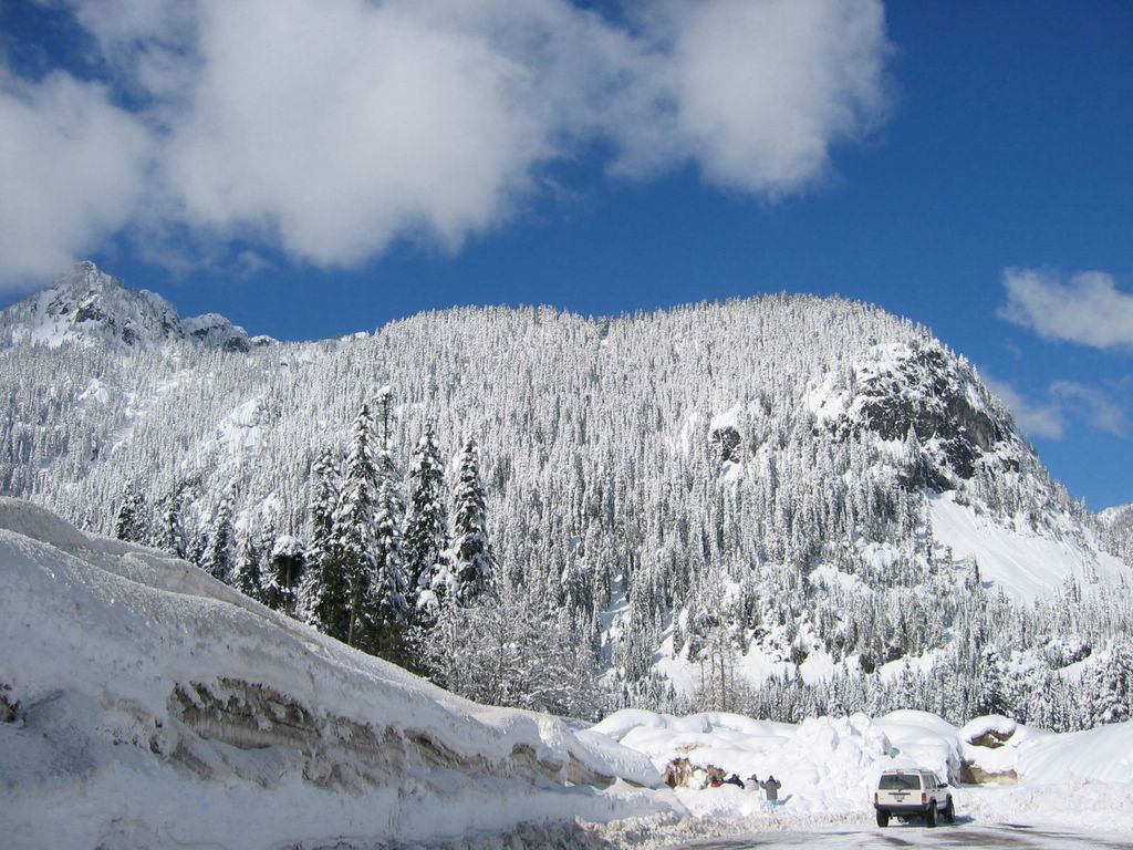 There was an unexpected snowstorm the day before my trip. Our car couldn't be driven that far (long story), so I rented a Chevy Trailblazer for peace of mind. Snoqualmie Pass, which is about 45 minutes outside of Seattle, was my first stop. I had to pull off the road because the back window was covered in muddy muck and I had no idea how to turn on the back wipers. But it was a gorgeous place to be detained.