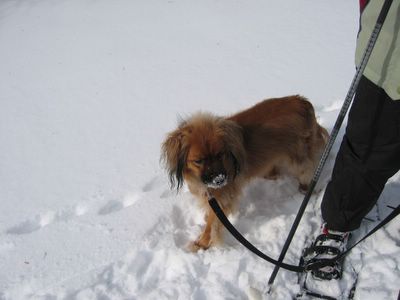 Christina and Steve's dogs, Bosco and Amore went snowshoeing with us. These two pictures, with Bosco's mournful look and Amore's snow-covered muzzle, capture their personalities well.