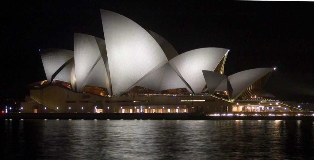 On Tuesday night after our dinner I got a much better shot of the Sydney Opera house when it was lit up.