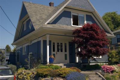 When I got back in from Minnesota, one of things awaiting me was our newly painted house which the painters finished while we were away. Today is a beautiful almost-summer day in Seattle so I stepped outside for a quick shot: